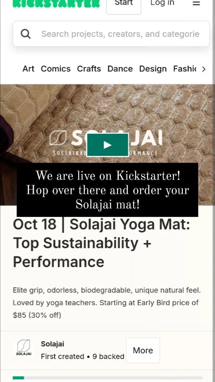 Our first product is the patent-pending Solajai Yoga Mat. Our mat is >99% natural and biodegradable.